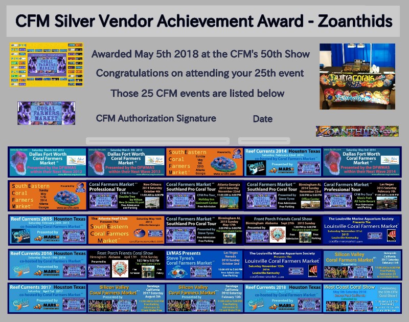 CFM Silver Vendor Award - [SV-002] - Zoanthids