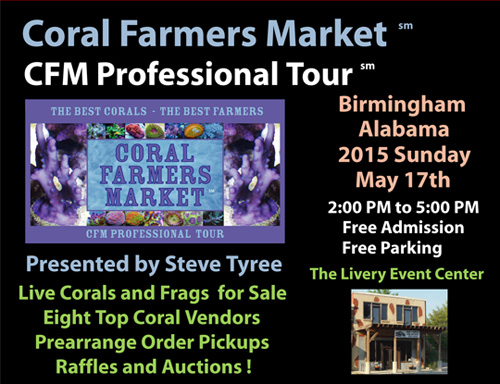 The Coral Farmers MarketSM company is proud to announce our second ever stop in the Birmingham Alabama area. This event will occur on Sunday May 17th 2015. There will be at least nine coral selling vendors at this venue location. Attendance for this event is free to the public. There will be raffles and auctions throughout this midday event. This particular CFM Pro Tour stops is a local event for the nearby community. It will be held in an old historic building converted to an event center in Leeds Alabama. Our first event in Alabama was in 2014 and was well attended by the local community.