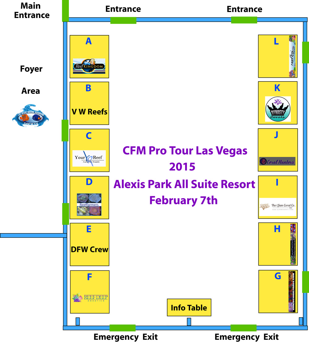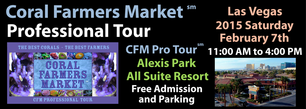The Coral Farmers MarketSM company was proud to announce our third organized stop for the CFM Pro TourSM . This event was held in Las Vegas Nevada on Saturday February 7th 2015. Attendance for this event was free to the public. The Las Vegas Marine Aquarium Society was conducting their own raffles throughout the day. There are maps showing the location of the event below. The event was held in the Alexis Park All Suites Resort which is a non-gaming facility located right across the street from the Hard Rock Cafe Hotel and Casino. It was physically just north of the Las Vegas airport and just west of the UNLV campus.
