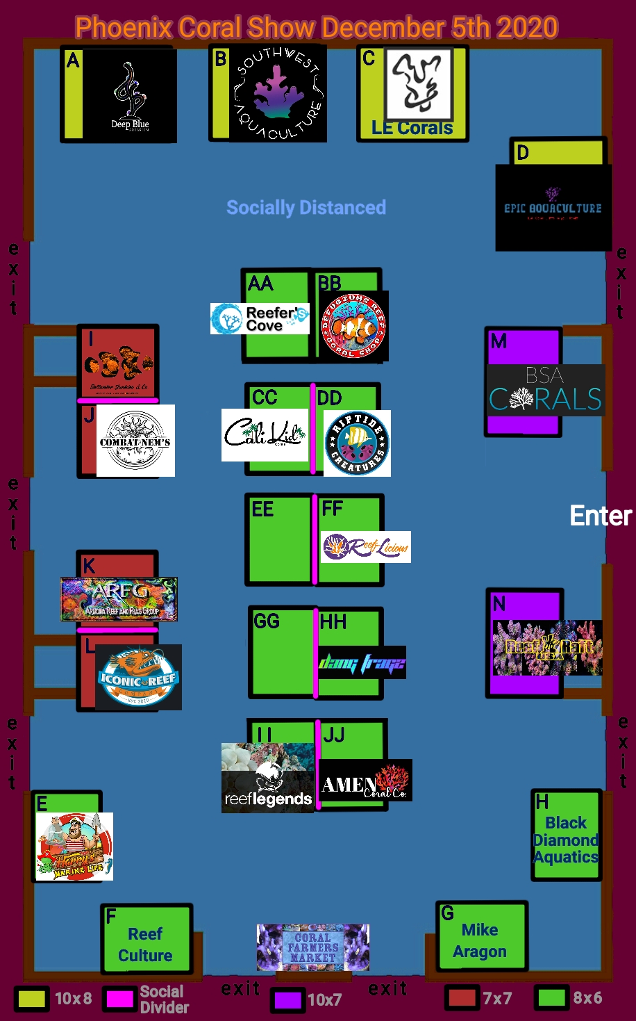 Covid Update - New restrictions have been added by the governor. At the venue face masks are required and 6 foot social distancing will be enforced. Groups that arrived together can stay together, but people who arrived separately must maintain 6 foot distancing. We will have 14 coral selling vendors. An apparel vendor and the club will be located outside the ballroom in the foyer. We have to limit the max number of people in the ballroom to 50. So we will be moving people through there when occupancy becomes available. We are also asking you arrive as late in the day as possible. Vendors will be spaced 6 feet apart and social dividers will be in place where needed. Masks, gloves, wipes and hand sanitizer will be available. If you are sick please stay home. Just request a ticket refund via email to coralfarmersmarket@gmail.com