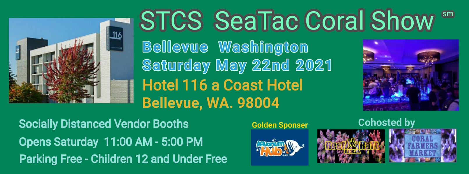 The Coral Farmers MarketSM company is returning to the Pacific northwest. We did two CFM events in Portland from 2007 to 2008. Now in 2021, along with coorganizer Reef Raft USA, we are cohosting our first annual SeaTac Coral ShowSM event on May 22nd 2021. This Bellevue Washington located coral show will be open to the public between 11-5 pm on Saturday May 22nd. Parking at this venue is free as there are parking spots located all around the hotel complex. Steve Tyree will be hosting this STCS event. We have modified the vendor booth map to put in place social distancing measures. This creates a safe and sane environment to view corals from multiple vendors.Vendors email coralfarmersmarket@gmail.com for inquiries.