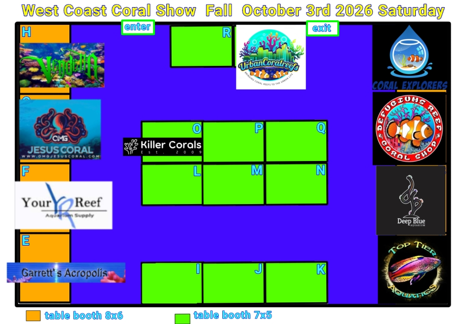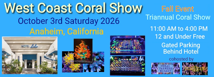 The Coral Farmers MarketSM company and show operator Reef Raft USA, are bringing our 21st triannual coral show to Southern California. The West Coast Coral Show Fall will occur on Saturday October 3rd 2026. This will be held at our Anaheim hotel venue. Join us at the very first event officially called a Coral Show within the US. This event will feature coral vendors, awesome exhibitors, plenty of validated parking, a safe environment, more coral than can be counted and door prizes for early online ticket buyers. The WCCS 2026 Fall event will be organized by Steve Tyree of CFM and operated by Tony Huynh of RR USA. For vendor inquiries contact coralfarmersmarket@gmail.com