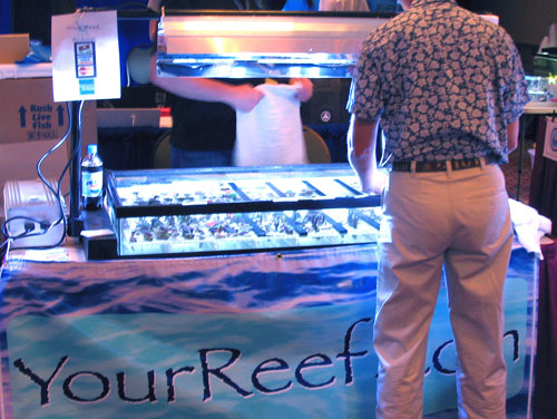 We will be adding more images as we recieve them. If you have images of the 2007 SW-CFM event please email them to styree@ispwest.com . These are the best ones Steve took, since he forgot to turn the flash of his new camera to the on position. Thanks to Eric Cammano for post process work on: FragCityCorals; Toucan Moon Corals; Reef Nutrition; Reeffarmers Right Side and OC Aquatics Images.