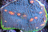 Oberon Mycedium Future AE/LE Coral Exotic Small Corallite Pigmentation Surface Develops Bluish Pigments Medium Thick Plating Stony Coral Weak to Moderate Light Moderate Current Moderately Difficult to Maintain Example Seed Colony Auction for a Small Fragment