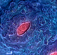 Bazooka Joe Watermelon Chalice Limited Edition Brilliantly Colored Watermelon Parent Colony Imaged Fragment from Parent Approximate Size = 1/2 inch x 1/2 inch Image by John Dakan