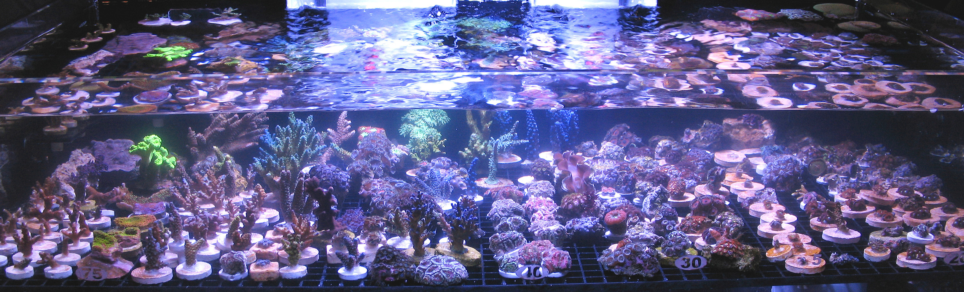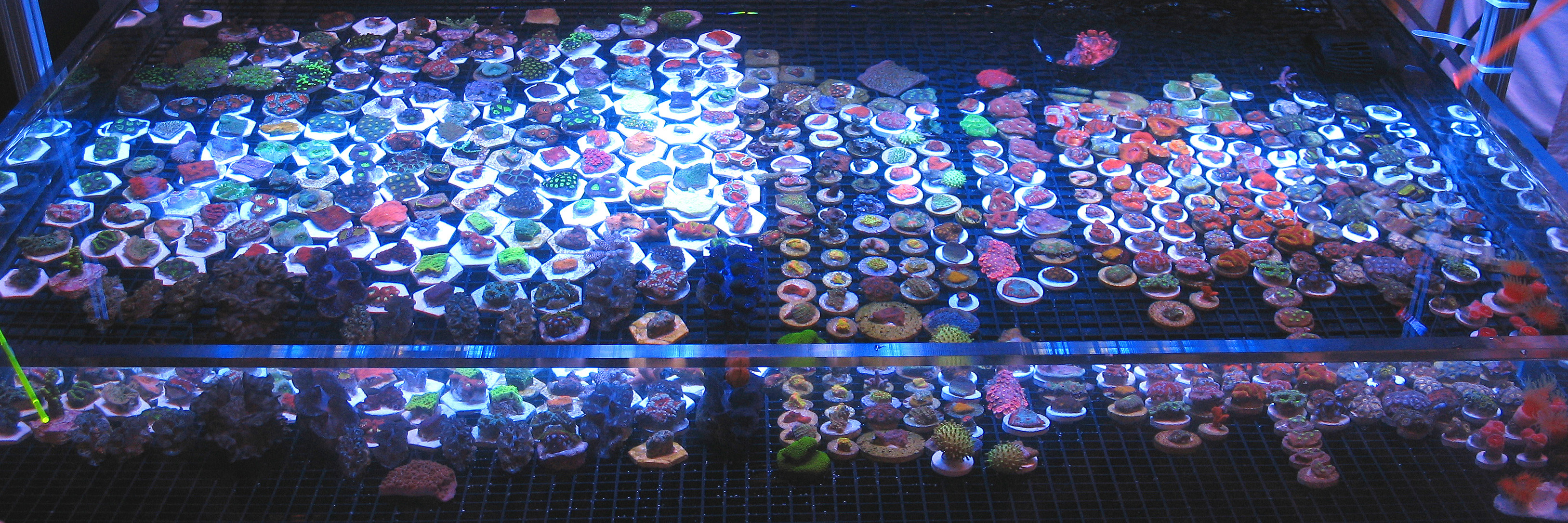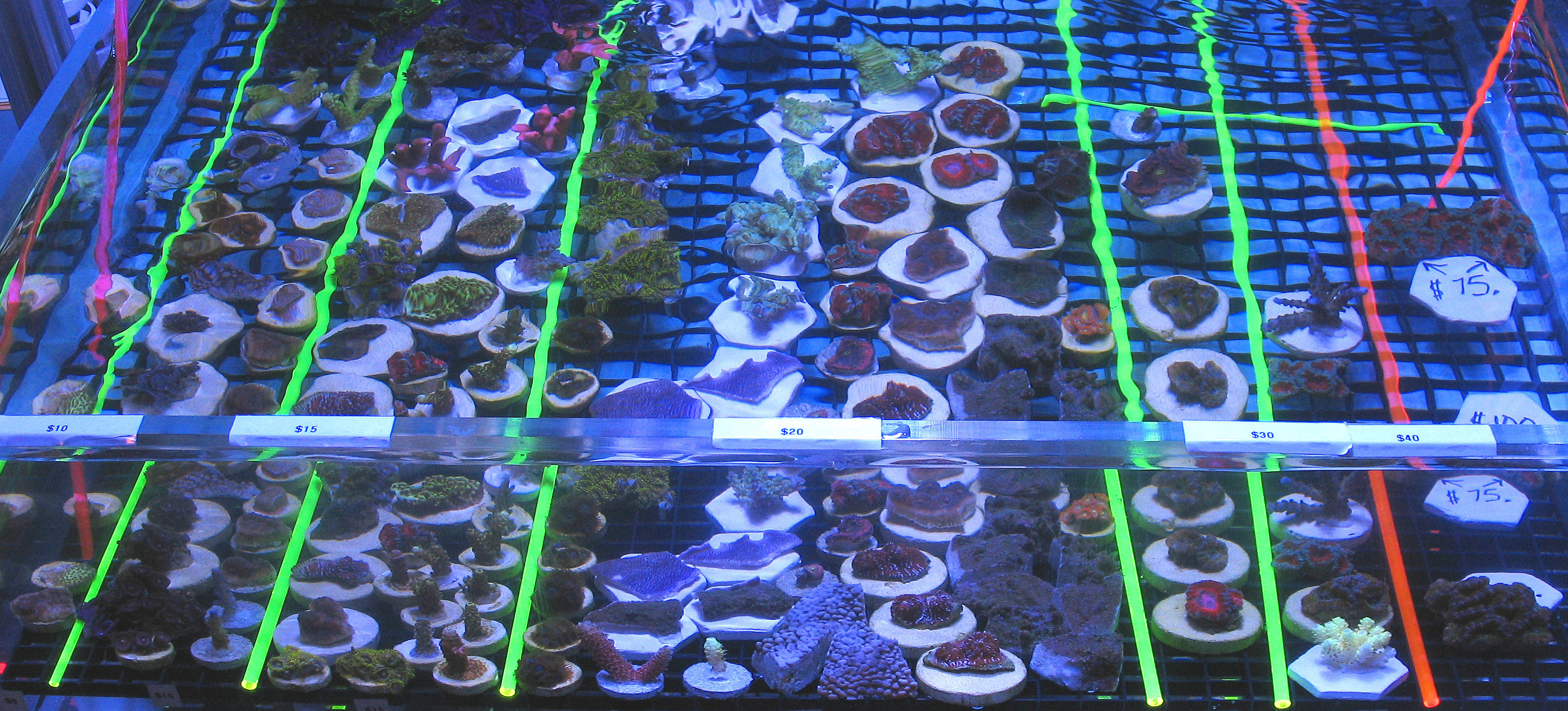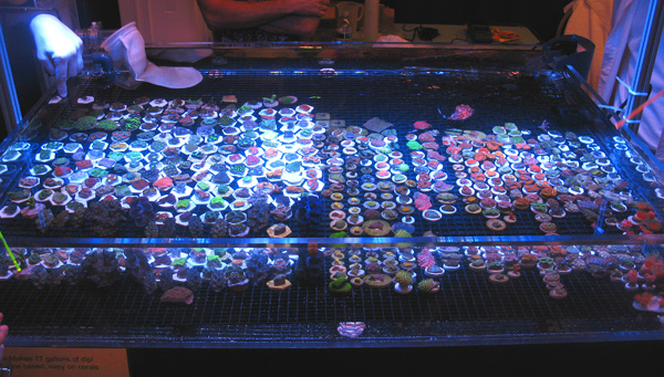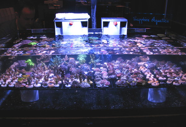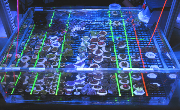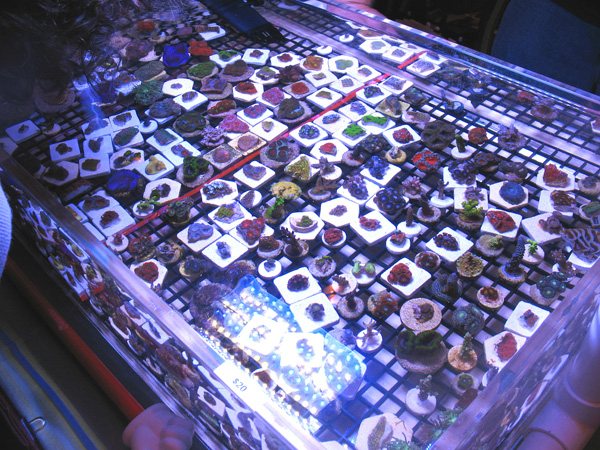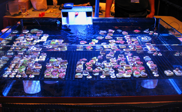 The second annual Dallas Fort Worth Coral Farmers MarketSM event was a tremendous success. We would like to thank the new vendors that participated in this Coral Farmers MarketSM sanctioned event along with all the new attendees. Our total attendance is estimated at 234. That is a 46 % growth rate from the first annual event in 2008. The number of coral selling vendors also doubled for this second annual event. As the images below demonstrate, there was an incredible selection of corals available to the public attendees. This was the fastest year to year growth rate that any Coral Farmers MarketSM sanctioned event has ever experienced. Due to this fast growth rate, we did experience some operational problems. One of our employees from California became ill during the event and this meant our door crew was seriously under staffed. Art Petit (co-owner) did a phenomenal job, but some attendees were able to enter the event without purchasing tickets. Art was busy with the strong raffle participation and he was also busy conducting the raffle and auctions. We believe that the total number let into the event due to the operational problem was between 5 and 15. We assumed 10 for the total attendance estimate figure. Next year we will have one extra employee for the door and another just to handle raffles. That should solve that problem. We are also looking into accepting a sponsership offer from the local DFWMAS to assist with our operational problems. If this event grows by 40 % or more next year, we will definitely need the help. We also experienced some additional operational problems when the hotel changed our meeting room just a few days prior to the event. Even with these problems, the general opinion was that this event was very successful. Average vendor sales were strong considering the prevailing economic conditions, but were less then last year. This was primarly caused by increasing coral selling vendors by 100 %, while attendance increased by 46 %. We look forward with great anticipation for the DA-CFM 2010 event which will occur in November. We should have the event scheduled and this web site updated by no later then March.